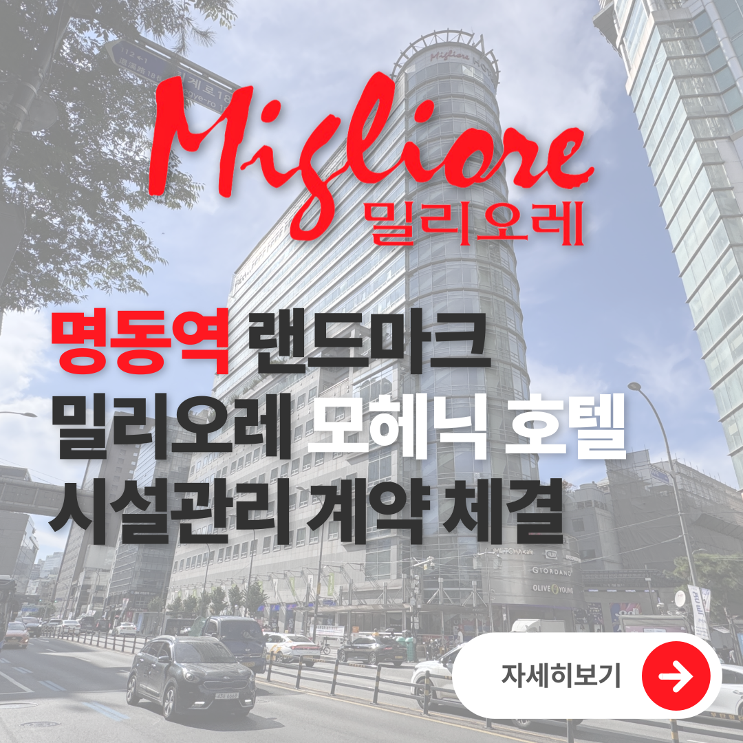 사회적협동조합 위드소유는 2025년 9월 5일, 서울 명동역의 랜드마크 건물인 **밀리오레빌딩 내 모헤닉호텔(116객실)**과 시설 영선팀 관리 계약을 공식 체결하였습니다. 이번 계약을 통해 당사는 모헤닉호텔의 안정적 운영을 지원하기 위해 전문 영선 관리 인력을 배치하고, 건물 및 객실 전반에 걸친 시설 점검·보수·예방 관리 서비스를 본격적으로 제공하게 됩니다. 특히, 다년간 축적된 호텔 및 대형 건물 관리 경험과 실시간 보고·관리 시스템을 바탕으로, 운영 효율성과 고객 만족도를 한층 더 강화해 나갈 것입니다.■ 계약 개요계약일자: 2025년 9월대상기관: 모헤닉호텔 (서울 명동, 밀리오레빌딩)관리범위: 객실·공용부 시설 점검 및 보수, 예방 관리, 전반적 영선업무 지원■ 운영 관리 방향당사는 본 계약을 통해 호텔 운영의 핵심인 시설 안정성 확보와 쾌적한 투숙 환경 제공을 목표로 합니다.또한, GPS 출퇴근 관리, 전자결재, 실시간 업무보고 체계 등 IT 기반 관리 도구를 적극 도입하여 투명하고 체계적인 현장 운영을 실현할 예정입니다.■ 운영 관리 방향당사는 본 계약을 통해 호텔 운영의 핵심인 시설 안정성 확보와 쾌적한 투숙 환경 제공을 목표로 합니다.또한, GPS 출퇴근 관리, 전자결재, 실시간 업무보고 체계 등 IT 기반 관리 도구를 적극 도입하여 투명하고 체계적인 현장 운영을 실현할 예정입니다.■ 호텔 운영 포인트객실(116실) 관리정기 점검과 신속 보수를 통해 투숙객 만족도 제고에 중점.공용부 관리로비·엘리베이터·복도 등 고객 동선의 시설 안정성 및 쾌적성 확보.시설 안정화전기·기계·소방 등 주요 인프라 설비의 정밀 점검을 통한 안전 강화.당사는 본 계약을 계기로 호텔 운영의 든든한 파트너로서 역할을 다하며,투명한 관리와 전문성을 기반으로 모헤닉호텔이 명동 대표 숙박시설로 자리매김하는 데 기여할 것입니다.위드소유 사업개발본부 홍보팀☎ 02-990-7901✉ bd@soyoupartners.com
